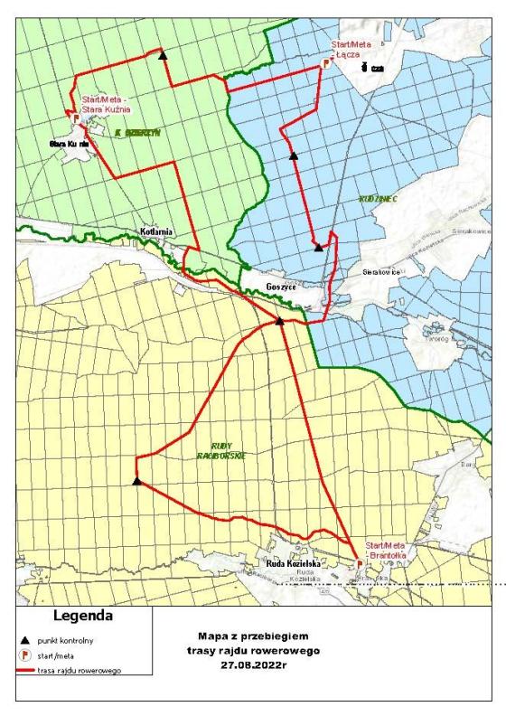 • Nadleśnictwo Rudziniec – Miejscowość Łącza, parking leśny za boiskiem  - start i meta.